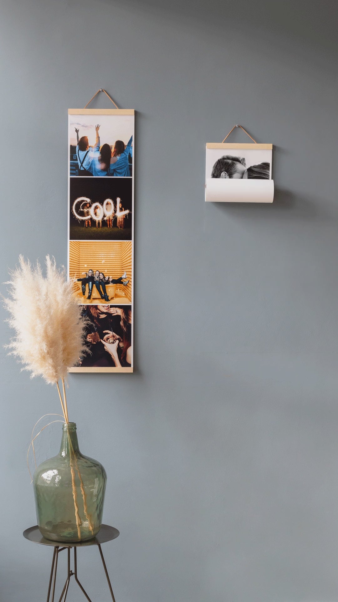 Met het houten ophangsysteem van 25 cm kun je gemakkelijk de fotostrip ophangen. Onze posters worden door een fine-art fotoprinter geprint op 240-grams papier met een matte glans.